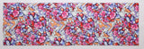 This scarf features bold abstract prints in multiple vibrant fall colors, purple, pink, orange, blue.